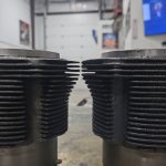 We balance the pistons, rings, and pins within one gram, measure piston and cylinders to match tolerance as close as possible with the set and label according to cylinder (Tightest tolerance starting with #1, #2, #4 then #3), Gap piston rings for street use (message us at time of order if you want custom ring gaps) cut the flashing out of the cooling fins for proper cooling, and apply a light flat black coat of paint to the barrels to prevent rust. We lightly coat the cylinder crosshatch with oil and load the oil ring lands with our own mix of oil to aid in break in.