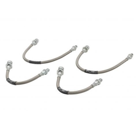 EMPI’s Stainless Steel Brake Lines are made of super tough braided stainless steel covers over Poly hose, and are D.O.T. approved – which is important in such a critical part as a brake hose. Because they are made with the stock size fittings, no adapters are needed to insure a correct fit, and it lessens the chance of leakage. Stainless Steel Brake Line Kits must be installed at all four corners, never mix rubber and stainless in the same brake system. Caution should be used when installing any new brake line. If you have any doubt about your ability to install them correctly, please let a trained professional mechanic do the job. Made in USA.
