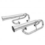 Dual style exhaust features great looks and maximum horsepower. Slip-joints allow for easy installation. Available in chrome, black or ceramic coated. With or without Muffler Inserts. Eliminates heater boxes. Fits 1200-1600cc engines