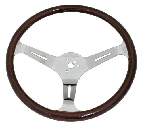EMPI 380mm/23mm Grip Dark Classic Wood Steering Wheel Only 3″ Dish with Classic 3-Bolt Hub Pattern