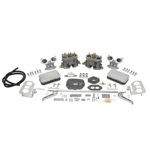 Deluxe is an understatement! These EMPI Dual-D Carburetor Kits feature only the best components available. A pair of EMPI D Carburetors – engine tested, adjusted and baseline jetted. Best hex bar linkage in the industry, easy to adjust and rock solid in maintaining that adjustment for miles of performance driving. Air cleaner top & base with 1.75” gauze filter element. Does not fit under decklid.