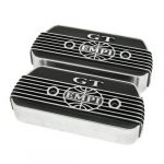 What’s old is new again…New EMPI GT Valve covers featuring high polished fins and sides with black matte center, deeper bosses for breather vent fittings, and internal gussetting for strength. Enough clearance for most high lift rocker arms. Special C-Channel-Type gaskets and stud seals insure positive sealing. Installation on 67 and prior Bugs may require trimming of the body for clearance. Complete with all gaskets and hardware.