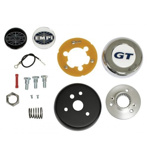 For EMPI and other popular 3-bolt steering wheels. Features Chrome Horn Button that is recessed for use with or without EMPI Logo, 3 logos supplied
