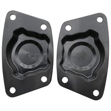 Created using Foose’s concept sketches and SolidWorks CAD, the EMPI team has CNC machined these spring plate covers with an engraved Foose Design logo in 6061 T-6 aluminum for a perfect fit.
