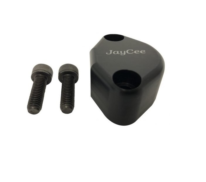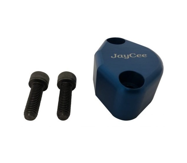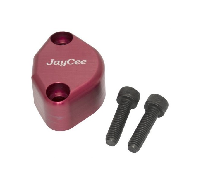 JayCee Billet fuel pump block off with breather hole. Made of 6061 aluminum then anodized for a professional finish. The breather hole is mounted on the back side with a 3/8 NPT hole for easy fitting installation. Mounting hardware is included.