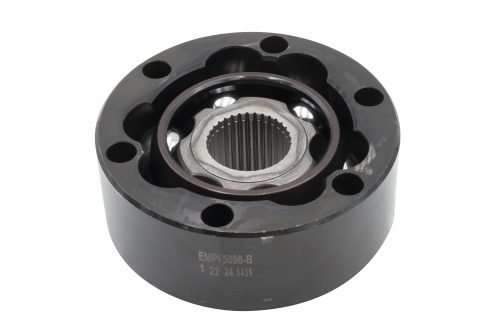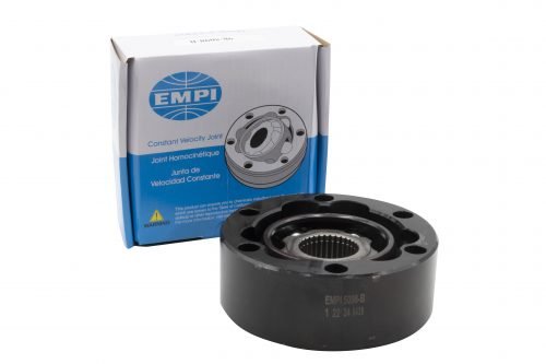 EMPI, Porsche Off-Road 934 C.V. Joint Only, 128mm O.D., 1.000″ Balls, Each Large 33 Spline Inner Race, (Solid outer race, w/Chromoly Cage) The I.D. of the 6 mounting holes are 12.4mm. (The fit between balls and tracks is very loose to allow for maximum angles)