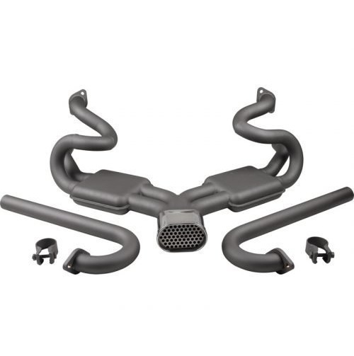 Manifold sports exhaust with 2 silencers and J-tubes without heating, inlet pipes Ø38×1,5 mm, outlet pipes Ø41×1,5 mm, stainless steel with heat resistant paint, Sebring style
