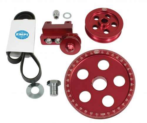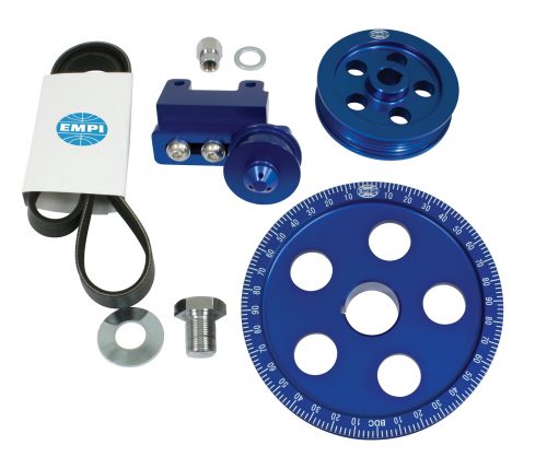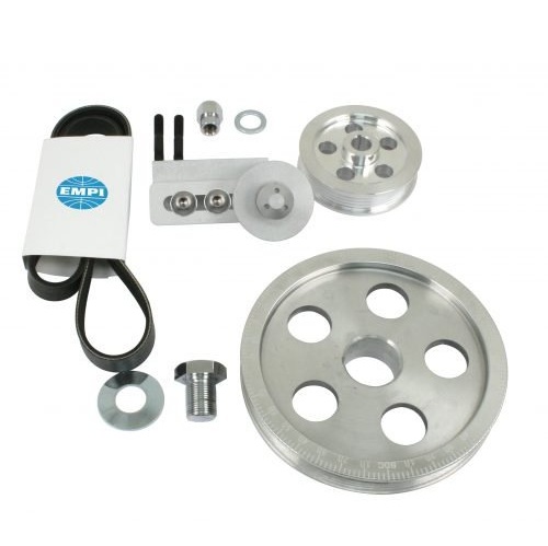 Serpentine Belt System is designed for style and performance. Easy installation and adjustment, quiet and smooth performance and increased belt life. A must for hi-revving engines. Comes in Black Anodized Aluminum with permanent Laser-Etched numbers.
