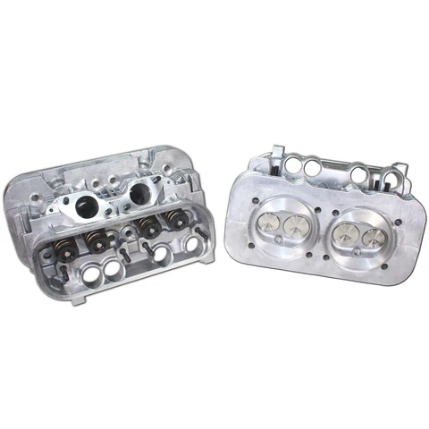 This is a brand new set of 2 Cylinder Heads for a VW Type 4 2.0L. The heads come with Intake and Exhaust Valves, with Keepers, retainers, and springs. They are ready to install. The Heads can be tapped for the head temp sensor if needed.