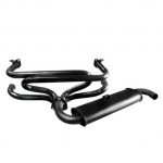 Single Quiet System Type 1 & Ghia, 1300-1600cc, 66-73 These precision designed systems feature 1 1/2″ Tubing and Large 3 Bolt Muffler Flange. Mufflers feature Black tips. All systems include aluminum flex hose and installation kit.