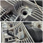Installation is easy! On type 1’s insert the spray bar into the upper hole on the top of the engine case behind the shroud, remove one bolt holding the fan shroud to the cylinder tin, re-install using framework as the washer and the included M6 allen bolt for easy installation. On the Type 4, simply remove two bolts on either side of the fan, install the spray bar with the nozzle protruding through the grill opening at the center and re-install with the two supplied allen head bolts. After installing your thermocouple underneath the spark plug, wiring is easy! Red to key-on power (ignition coil + if not running a CDI works), black to negative, and yellow supplies power to the pump! That’s it!