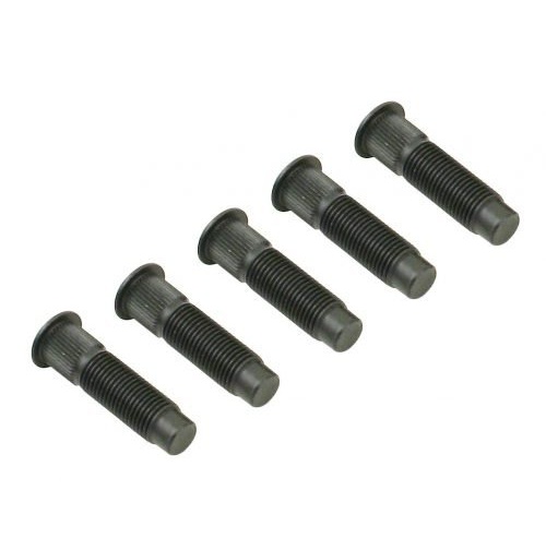 Quality studs are chamfered for brake shoe clearance and feature a starting shoulder for easy nut alignment. Available for Drum or Disc Brake applications. Requires machining for press fit installation. A 9/16″ drill bit should be used, may require reaming to 37/64″. The Porsche style nut has a 19mm hex head.